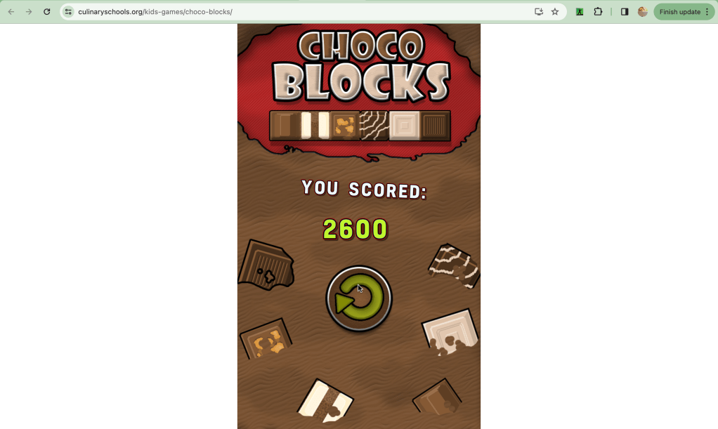 I love online gaming, and no matter how many amazing games I play, I’m always on the lookout for more. My all-time favourite game is Tetris (yes, I’m a millennial), so I tend to gravitate towards similar games. As I was surfing the web, looking for more Tetris-like games, I came across a sweet find – Choco Blocks at CulinarySchools.org