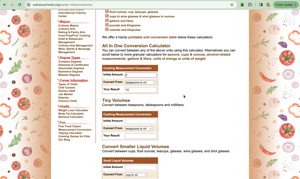 But here’s the best part: CulinarySchools.org isn’t just about games. It’s also a hub of resources for anyone looking to lead a healthier lifestyle. From weight loss tips to workout calculators, there’s something here for everyone. And let’s not forget about the All In One Conversion Calculatorโit’s a lifesaver for creating perfect recipes!