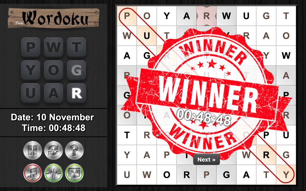 Wordoku – I am a huge sucker for Sudoku and guess what, this website has Wordoku! It has 4 levels – Easy, Medium, Hard & Expert. There can be nothing better than Wordoku for a writer! I am so addicted to this game. So far I have cleared 4 days of Wordoku puzzles (it is a daily puzzle – so 1 puzzle each day.) I of course played them all in just one day – so yeah, you have the option of picking up dates and the puzzle for that day!