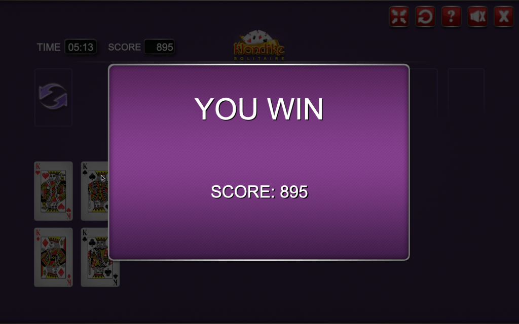 Klondike (Classic Solitaire) – A pretty good game, with the classic set up and the options of playing with 3 cards or 1 card for drawing.